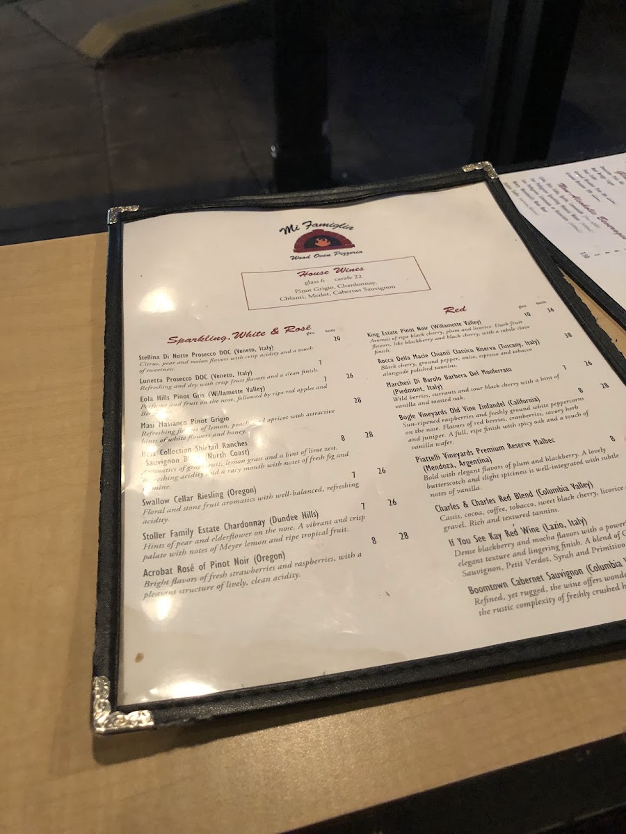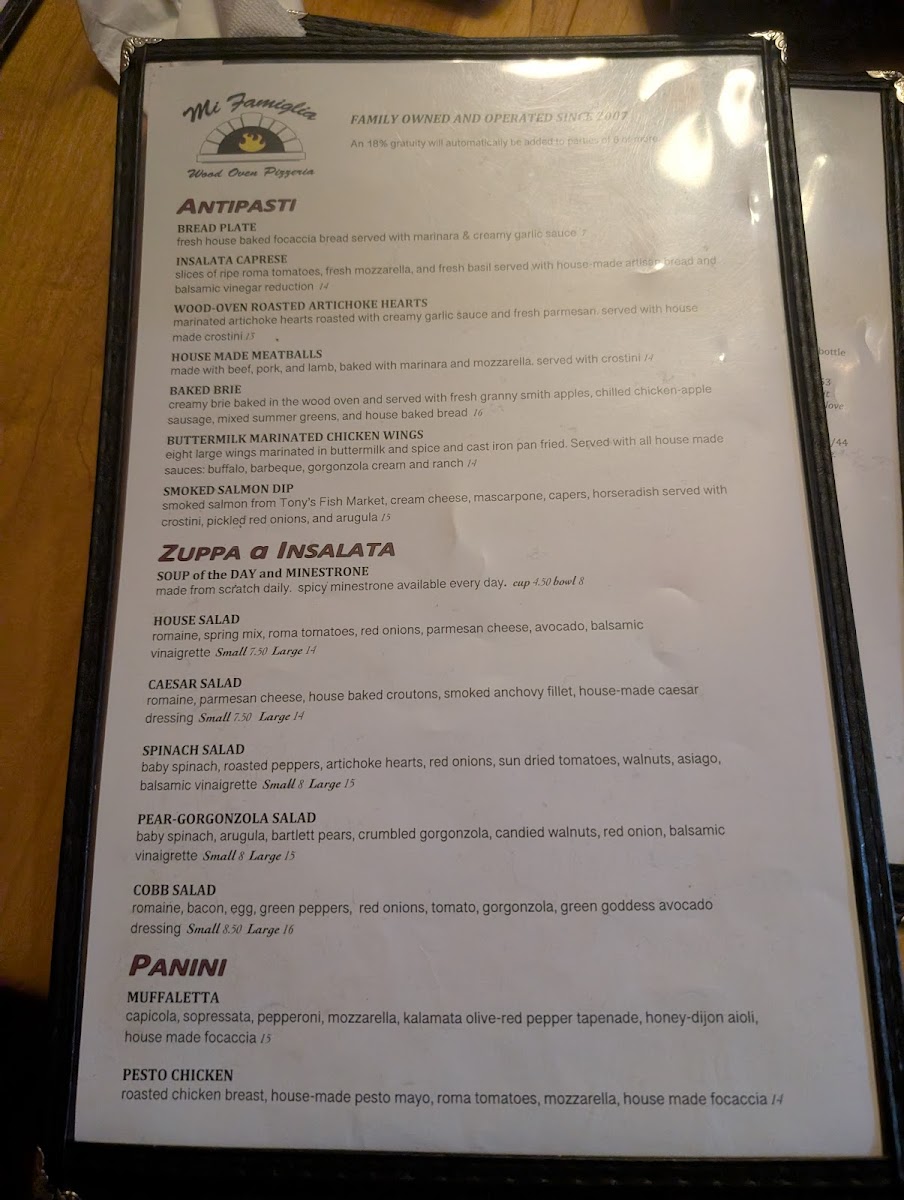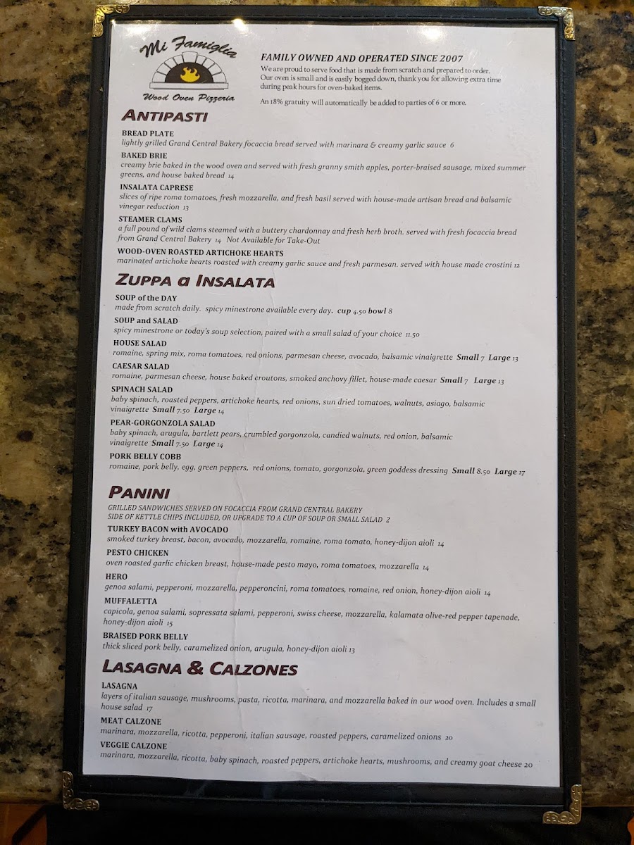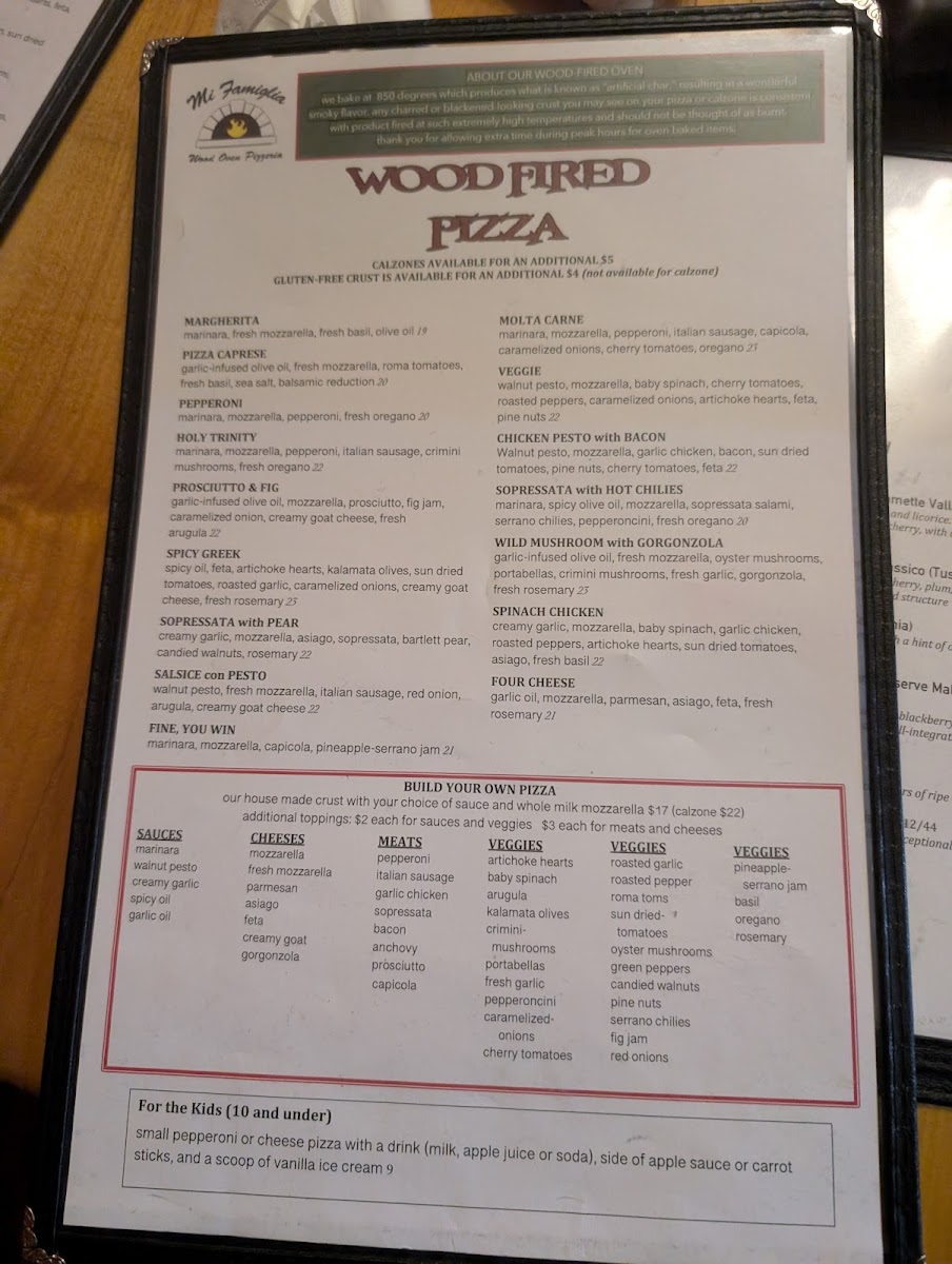 Mi Famiglia Wood Oven Pizzeria Menu